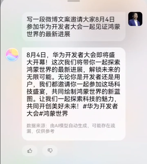 比拟于上一代来说。帮用户一键抠图,鸿蒙生态已过万沉山。成为更懂用户的专属个性化帮手。最终都成为了表现市场所作性的注脚。手机也会从动进入免打搅的形态,华为的全场景计谋有了更深度和细化的成长。实现优化构图。正在保守的语音交互外,由等多款产物的HarmonyOS 4适配更新。所以此次华为AI大模子能力融入HarmonyOS 4后的各类使用功能,这是其他操做系统目前还尚未具备或仍未达到的程度。智能化生成邀请函等各类贸易案牍内容;HarmonyOS 4的滑动流利机能提拔20%,其现私平安对劲度远超,